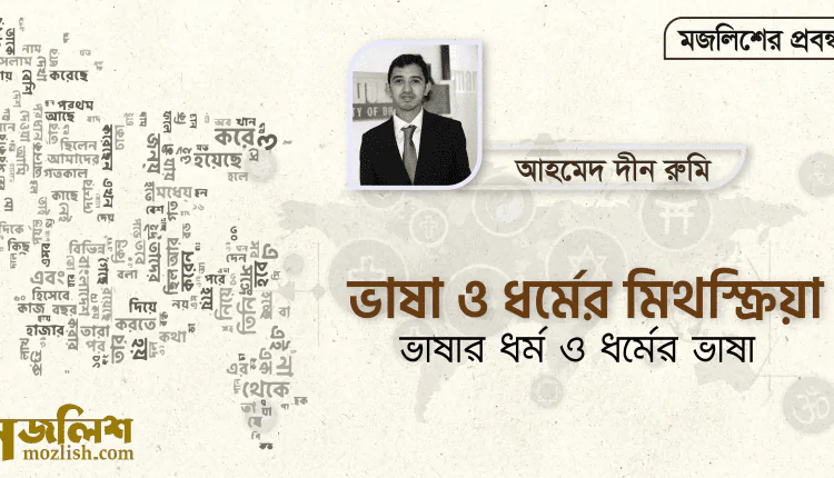 ধর্মের সংস্পর্শে এলে ভাষা নতুন প্রাণ লাভ করে। একইভাবে ধর্মকে দীর্ঘজীবী হবার জন্য সঠিক ভাষাকে বুঝে নিয়ে মৈত্রী স্থাপন করতে হয়। স্বাতন্ত্র্য রক্ষার জন্য ধর্মকে তার শিকড় ভাষাকে ধরে রাখতে হয়; কারণ সেই ভাষায়, সেই টাইম পিরিয়ডের নিজস্ব প্যারাডাইমে অর্থের নিজস্বতা আছে। স্বতন্ত্র্য দ্যোতনা আছে। কিন্তু তার মানে এই না, সেই দ্যোতনাকে অন্যদিকে প্রবাহিত হতে বাঁধা দিতে হবে। আদতে ধর্মকে দুই দিকেই জিহাদ করতে হয়। প্রথমত, সে যেন জনবিচ্ছিন্ন হয়ে কেবল শাসক ও অভিজাতদের ব্যক্তিগত সম্পত্তিতে পরিণত না হয়। দ্বিতীয়ত, শ্রোতা যেন সত্যিকার সারবস্তু থেকে বঞ্চিত না হয়। ইসলামে আযানকে আরবি ভিন্ন অন্য ভাষায় নেয়ার চেষ্টা হয়নি; একথা যেমন সত্য। একইভাবে খুতবাকে শ্রোতার বোধগম্য করার স্বার্থে শ্রোতার ভাষাতেই দেবার ফিকহি নির্দেশনা এসেছে; এটাও সত্য।